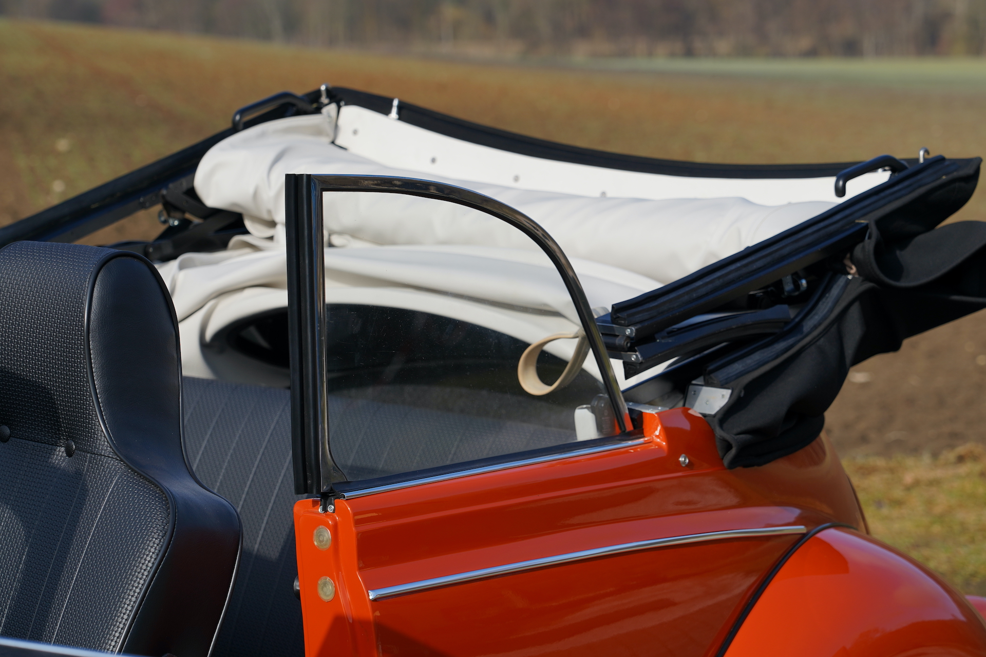 Angefangen von der Karosserie/ Lack, der Technik bis zur Innenausstattung und dem Stoffverdeck wurde alles erneuert.
